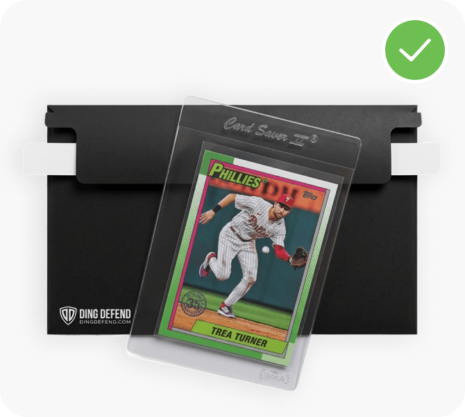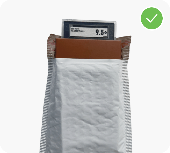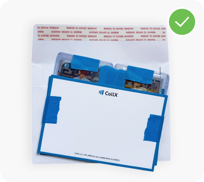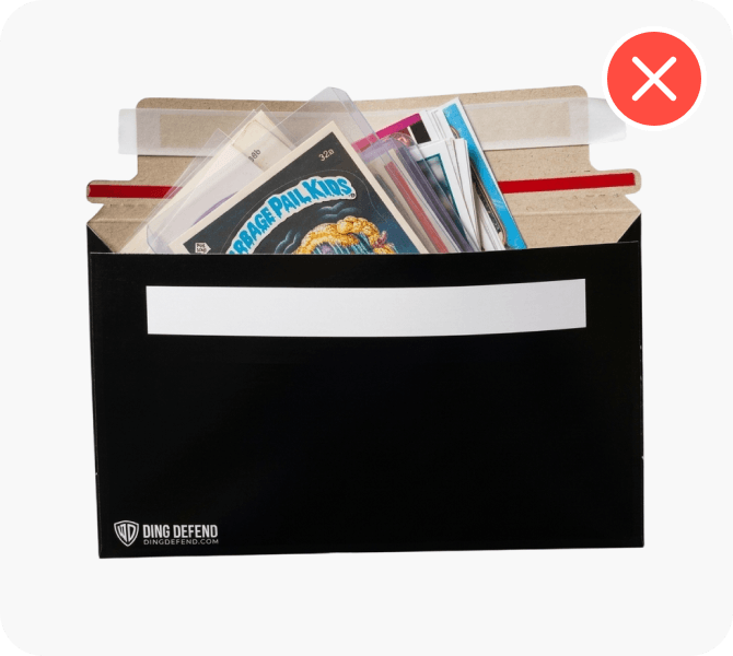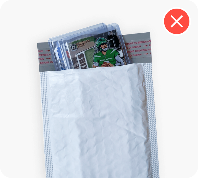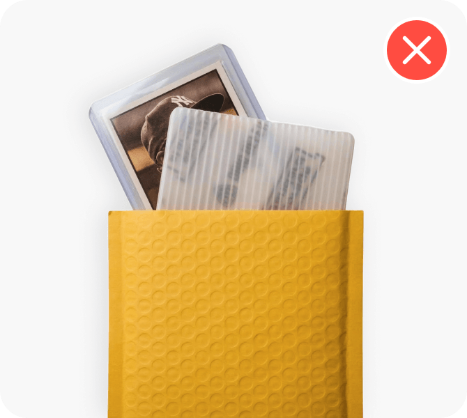 Use a padded envelope or bubble mailer, and ensure your cards are sleeved (penny sleeve, top loader, or card saver) enclosed in cardboard, postcards or plastic, sealed with blue painter tape.